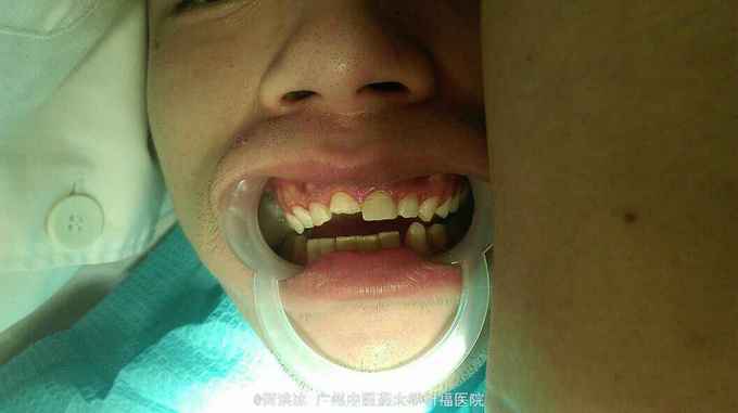 主诉:前牙外伤,要求处理。 病史:男,24岁。一个月前,骑自行车被汽车带倒,面部,手部多部位外伤,当时于急诊科做初步处理。三天后,来口腔科,要求处理受伤的牙齿。(初诊时,除了诊断,治疗用拍X光片外,患者不让留取影像资料,没有详尽资料,可惜!)