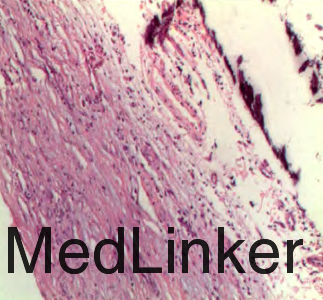 初步诊断:左睾丸肿瘤(表皮样囊肿)。经过充分术前准备,择期行左睾丸肿瘤剜除术。行术中冰冻切片,结果示睾丸表皮样囊肿。 术后病理诊断:左睾丸表皮样囊肿伴异物巨细胞、胆固醇结晶及钙化。