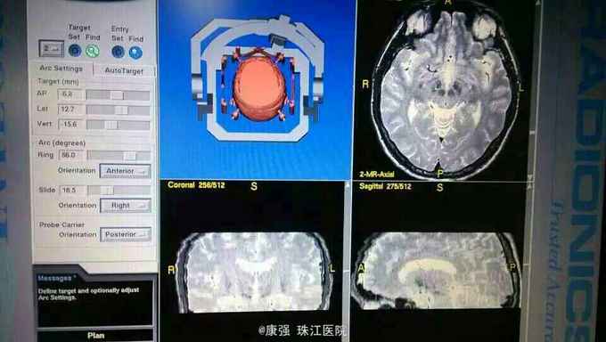 该患者的症状药物控制不良,曾行脑部磁铁植入术也未见好转。现给予DBS治疗。DBS是现今治疗帕金森病的首选外科术式。但其也存在多种问题,关于电极植入的方向,角度和深度应该如何更好地确定?