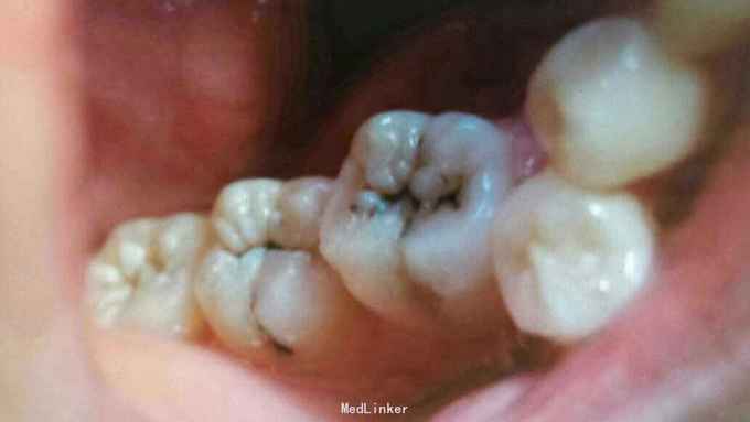 男,25岁,要求补牙,检查发现咬合面发黑,无冷热刺激痛