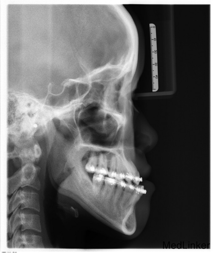 面部发育良好,左右基本对称,上中下比例协调,面下三分之一过长前突左偏,颏顶点左偏,双侧颞下颌关节无弹响无疼痛,开口度3.7cm,开口型正常,上下牙弓关系不协调,中线不齐,前牙反牙合,后牙近中错牙合,左侧后牙反牙合,龋齿无,牙周病无。