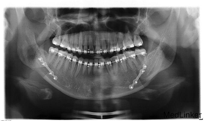 诊断:下颌前突,全麻下行“双侧下颌升支矢状劈开后退术+双侧下颌骨去骨皮质术+双侧下颌骨骨内坚固内固定术+双侧邻近瓣转移修复术”,术后予消炎、消肿等对症治疗。