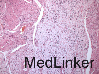 随访6月,无复发 基于组织学和免疫组化来看,该肿瘤应该是起源于平滑肌细胞,最终诊断为上皮样平滑肌瘤 富细胞型平滑肌瘤:其临床表现和大体观与普通型平滑肌瘤无区别。光镜下见到的肿瘤有丰富的平滑肌细胞,密集排列,缺乏纤维组织,血管也明显减少。瘤细胞胞浆相对减少,但仍具有平滑肌细胞梭形,杆状核两端较钝的特点,细胞大小形态较一致。无异形或仅有个别细胞有异形。