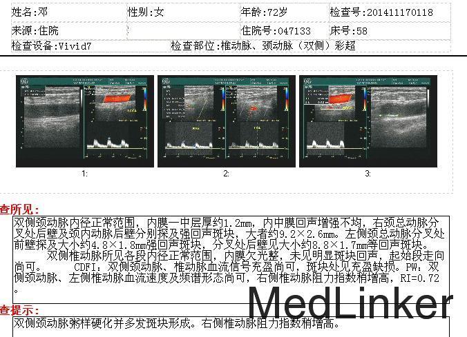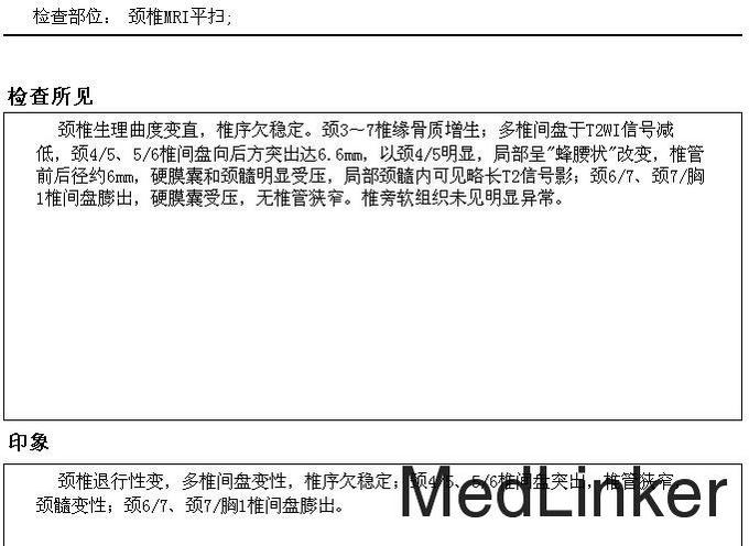 查体:左侧臂丛神经牵拉试验(+),椎间孔挤压试验(+),左下肢肌力5-级,余肢体肌力5级,四肢肌张力正常。双膝关节骨性膨大,活动不受限,双下肢无水肿,双足背动脉搏动减弱。双膝反射等神经生理性反射正常,左巴彬斯基氏征(+)。 检查:头颅MRI:左侧颞叶陈旧性脑梗塞(软化灶形成)。 颈动脉椎动脉彩超:双侧颈动脉粥样硬化并多发斑块形成。右侧椎动脉阻力指数稍增高。 颈椎MRI:颈椎退行性变,多椎间盘变性,椎序欠稳定;颈4/5、5/6椎间盘突出,椎管狭窄,颈髓变性;颈6/7、颈7/胸1椎间盘膨出。