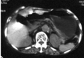 随访:未完成 讨论:在脾的附近,尤其是在胃脾韧带内和大网膜内,有时会发现一些具有被膜的小结节状脾组织,它们或为单个,或以细条状脾组织与脾相连,这就是副脾。副脾的数量有时可能相当多, 而且可能会在腹腔内呈弥散分布。当副脾与肾上腺位置贴近时,易被误诊为肾上腺肿物,尤其当患者临床有高血压症状时,更会想到腺瘤的可能。但本例患者没有低血钾及周期性麻痹症状,是与腺瘤诊断不相符的,应诊断为原发性高血压。由于这种情况极少见,一般不会想到是副脾。可疑时应行增强扫描,若发现结节与脾脏同时强化,则有助于副脾的判断。另外,若为副脾时同侧肾上腺应为正常形态,而为腺瘤时残余肾上腺常有萎缩改变。