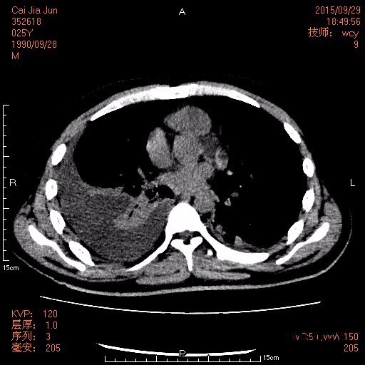 查体: 腹部平软,右下腹及右上腹可见两条引流管,引流出棕色臭味脓液,右下腹有压痛、反跳痛,余腹无压痛及反跳痛。 辅查: 1.腹部CT:1.原阑尾炎穿孔并周围及腹盆腔多发包裹性脓肿形成治疗后复查,现累及范围如上述,与前对比盆腹腔多发脓肿明显吸收变小。 2.腹膜炎;腹腔少量积液,与前对比减少。 3.双侧胸腔积液,与前对比减少;双肺下叶节段性肺不张,较前复张。 4.肝多发小囊肿。 2.胸片:1.右侧胸腔中量积液,左侧胸腔少量积液。 2.双下肺炎症及肺压缩性不张。 3.腹腔引流液培养:大肠埃希菌;屎肠球菌(D群)。