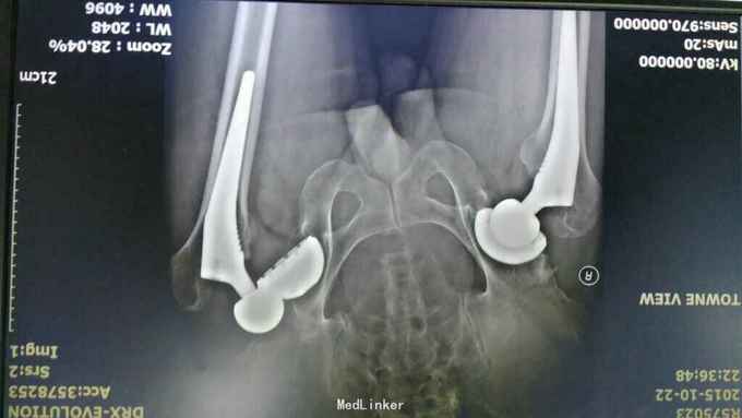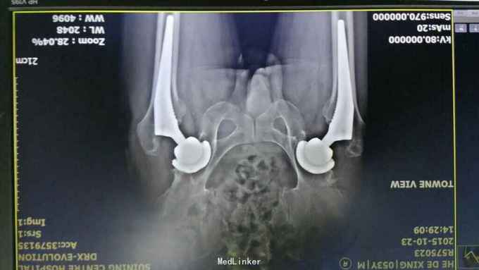 诊断:左全髋关节置换术后关节脱位 双侧全髋置换术后 治疗:急诊手法复位