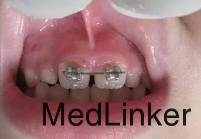 上前门牙开缝,要求关闭。无牙龈红肿。已经用固定正畸托槽了,由于唇系带过长,影响预后效果。要求切开唇系带