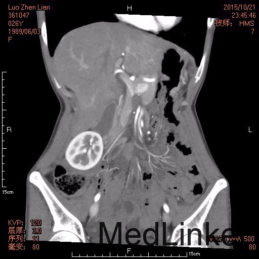 26岁女性患者,13小时前进食大枣后出现腹痛,较为剧烈,左侧腹部为主,5小时前至我院急诊,行腹部CT考虑肠系膜扭转,由急诊收入我科。3年前因胃溃疡出血行胃大部切除术,一月前行内镜下胃息肉切除术。
