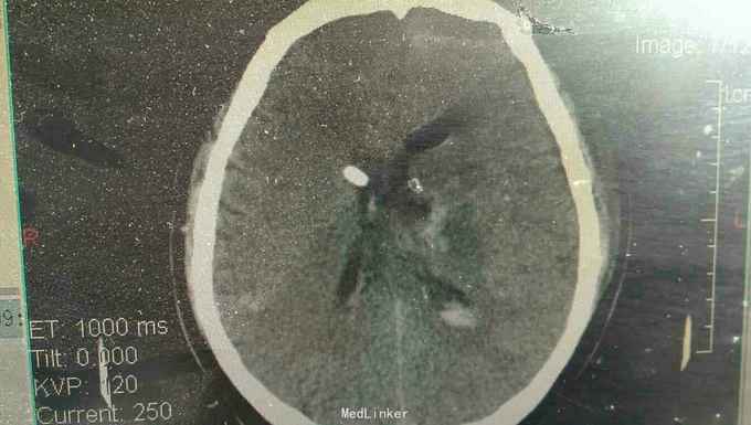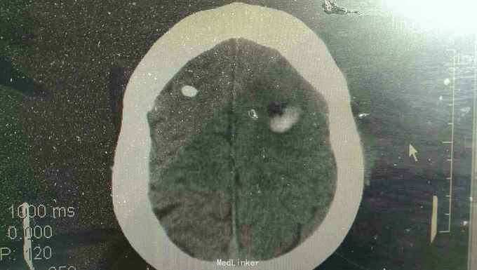 脑出血,高血压病 急诊行微创硬通道内镜下血肿清除术,术中清除大部分血肿,患者术后第二天清醒右侧肢体三级,语言迟缓。