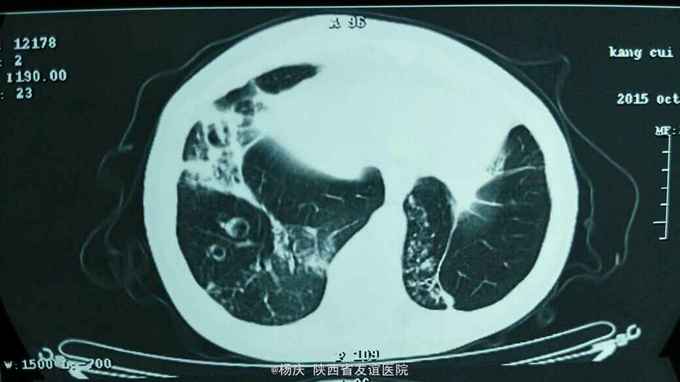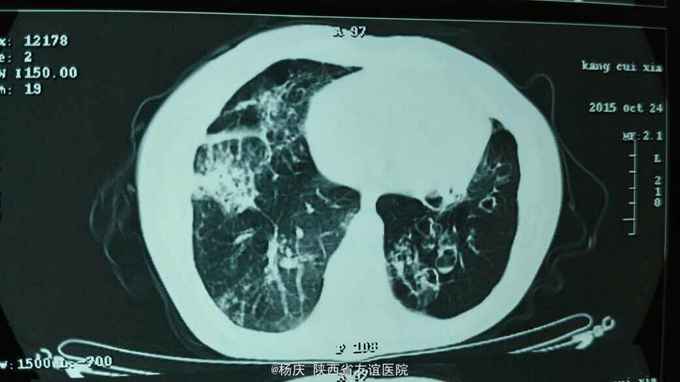 咳嗽,咳痰40年,加重1周,发热1天 40年前始反复咳嗽,咳痰,间断咯血,无声嘶、消瘦。反复多次影像学检查诊断:支气管扩张。1周前上述症状再次发作,外院静脉输液"克林霉素"常规量5天,疗效不佳。1天前出现发热,体温40.0摄氏度,发热前无发冷寒战。今被收住我院,自发病来,精神尚可,大小便正常。 既往无特殊疾病史。