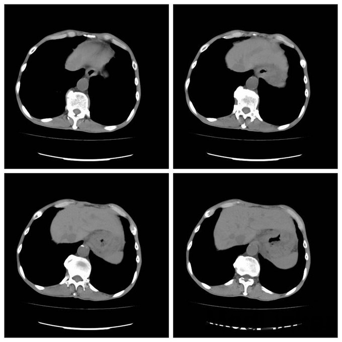 查体:无明显阳性体征 辅助检查:Hb80g/L CT及胃镜均提示胃癌