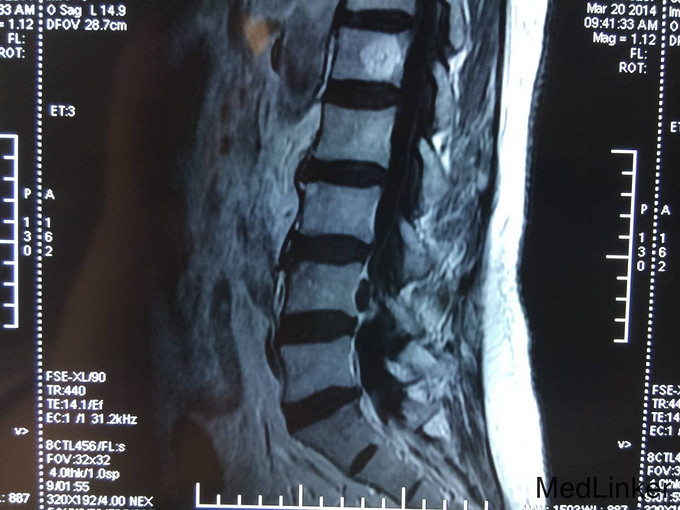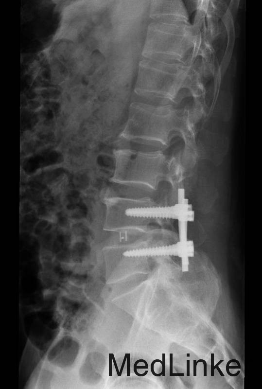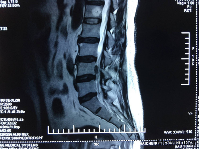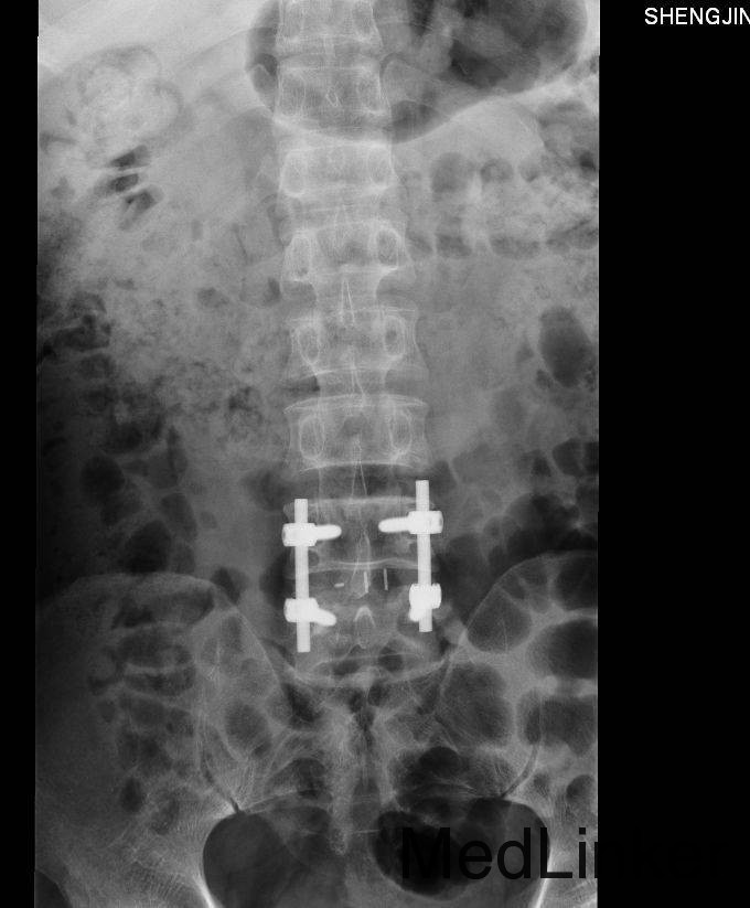 诊断 : 腰椎间盘脱出症,髓核游离 入院后完善检查,查无手术禁忌症后行腰椎后路椎板减压间盘切除椎间融合器椎弓根钉内固定术,术后患者左下肢疼痛缓解,术后支具保护下三天后拔除引流管后下地行走。