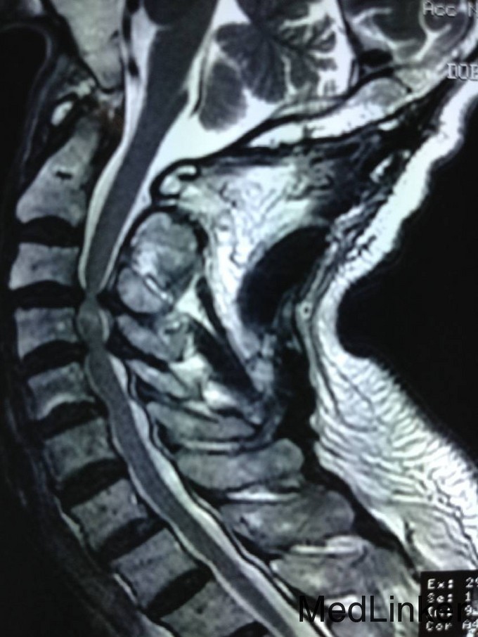 颈椎生理弯曲消失,活动度正常。双上肢感觉减退。双手握力(R5级,L4级),伸肘肌力(R5级,L5级),屈肘肌力(R5级,L5级),Hoffman(R-,L+)桡动脉搏动有力,末梢血运良。