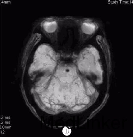 入院查体:BP158/98mmHg,神志清,构音障碍,双瞳孔等大等圆,对光反应灵敏,双眼各向活动充分,未见眼震,示齿口角不偏,伸舌居中,四肢肌张力正常,右下肢肌力4级,余肢体肌力正常,双侧病理征阴性,双侧感觉对称,颈软。急行颅脑CT 检查示:双侧侧脑室周围多发片状低密度影。颅脑MRI检查(距发病30余小时)示:双侧脑实质、脑干多发血管源性脱髓鞘,双侧基底核区多发脑软化灶,DWI序列可见脑桥偏左侧一圆形低密度灶,灶周稍高信号;SWI证实脑桥偏左侧及双侧基底核区多发顺磁性物质沉积。颅脑MRA检查示:颅内动脉粥样硬化改变。颈部血管超声检查示:双侧颈总动脉、左侧颈内动脉粥样硬化斑块(易损斑块)形成。