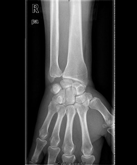 患者男,60岁,因“右腕部疼痛5月,右小指屈曲障碍20天”入院。入院前5月,患者无明显诱因情况下出现右侧腕部尺侧酸痛不适,未就诊治疗。左小指伸曲正常;入院前20天,患者出现右小指屈曲障碍,无小指指麻木,遂来我院治疗,门诊以“左小指深浅屈肌腱迟发性断裂”收入院。