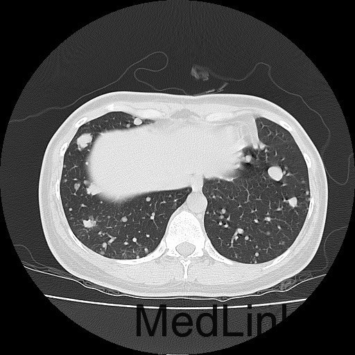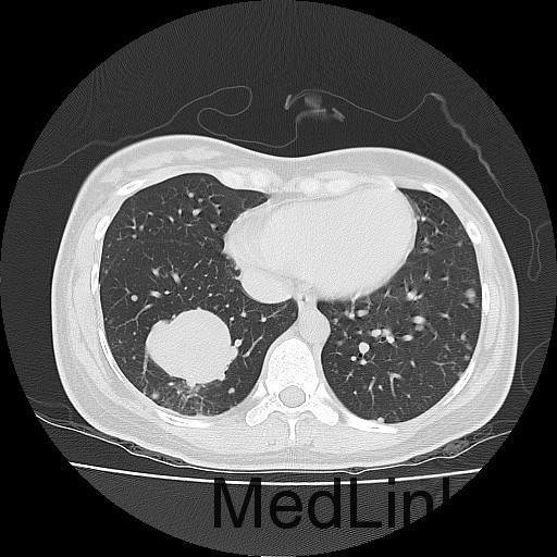 患者:27岁,女性。 主诉:咳嗽2月 病史:患者2月前无明显诱因出现咳嗽,无咳痰,未予特殊处理,当地医院CT检查提示双肺多发转移瘤,未予治疗。起病以来,精神食欲良好,