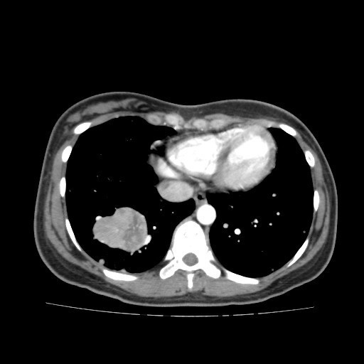 诊断:肺占位性病变(转移瘤?);大腿软组织疾患(右侧大腿肿物) 治疗:入院右下肢MR平扫+增强扫描:右侧大收肌软组织占位性病变,考虑间叶源性恶性肿瘤可能性大,血管源性可能?瘤周多发静脉曲张及侧枝循环形成,建议CT增强扫描进一步检查明确血管情况。遂于声引导下右大腿肿物穿刺活检,病理结果提示:(右大腿肿物)送检穿刺组织,肿瘤细胞形成器官样及腺泡状结构,细胞巢间为纤维性分隔,细胞呈大圆形、多边形,胞质丰富透亮,部分呈嗜伊红色,细胞核大,核分裂象少见,结合临床病史及免疫组化,考虑为腺泡状软组织肉瘤。免疫组化结果(①):CK(-),Vim(-),Ki-67(5%+),HMB45(-),MelanA(-),SMA(+),desmin(-),Myogenin(-),MyoD1(-),S100(-),NSE(部分+),CD56(-)。