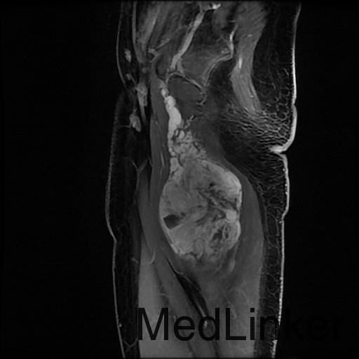 1、 腺泡状软组织肉瘤:组织来源不明细胞呈腺泡样或器官样排列的软组织恶性肿瘤,称之为腺泡状软组织肉瘤。 2、好发于青春,女性多见,常位于四肢深部肌肉或筋膜,少数可见于腹壁,肛旁区,舌,腹膜后,颈背部,肿瘤生长缓慢,早期无痛,常偶然发现,大者直径可达6~10cm,瘤块虽增大不快,但血循丰富,浅表者可触及搏动。 3、治疗:原则上应施行肿瘤广泛切除术,边缘切除极易复发,此肿瘤对现行的化疗、放疗不敏感,疗效不肯定,