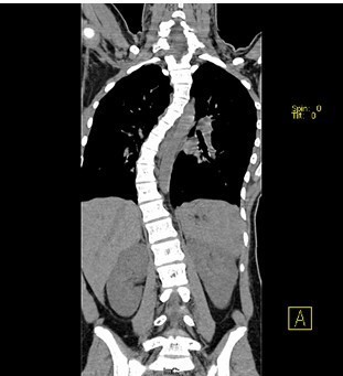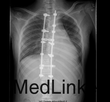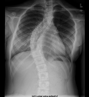 患者女,13岁,因“发现脊柱侧凸畸形4月”入院。患者4月前家长无意间发现胸背部脊柱侧凸,双肩不等高,无牛奶咖啡斑、无皮下结节,不伴活动耐力下降、气促、心悸、胸背痛、腰痛,日常活动及运动能力正常,在当地医院检查后建议手术治疗,到我院就诊,门诊以"特发性脊柱侧凸"收入住院。