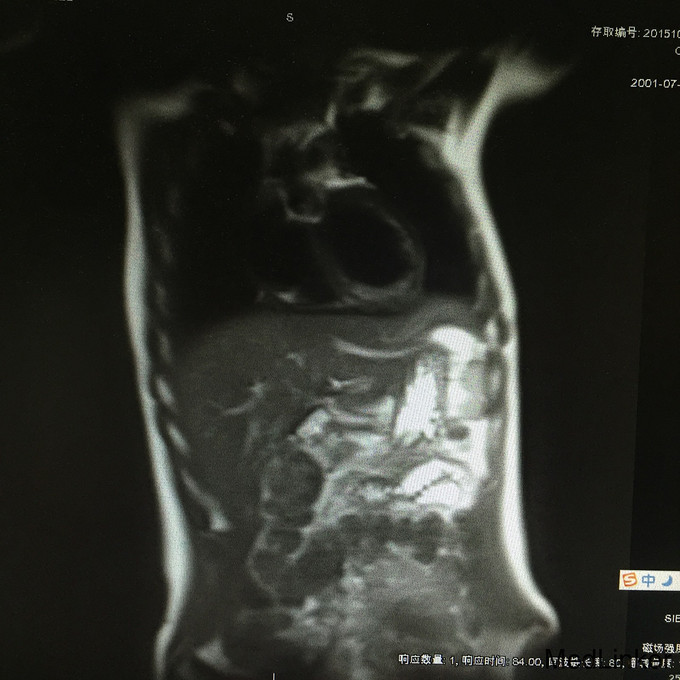 患者,女,14岁 主诉:月经紊乱1年余,发现染色体异常1月 病史:患者诉近2年来阴蒂缓慢肥大,1年前月经初潮,一直不规则,干净后3月第二次月经来潮,后持续5月均无月经来潮,2015年2月予口服药物后可来月经。停药后至今仍未来月经。患者闭经6月后于我院就诊,查体乳腺发育稍差,外阴可见阴蒂肥大,呈龟头状,未见开口,可见阴道及尿道开口,盆腔右侧可及包块,考虑两性畸形。为求进一步诊治收入我院。