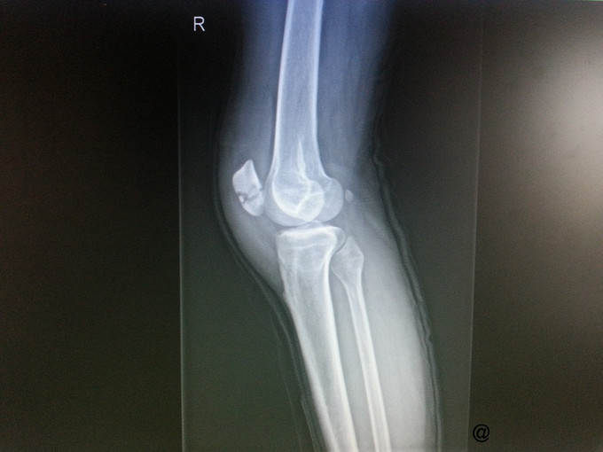 诊断:右髌骨骨折 处理:右髌骨骨折切开复位克氏针内固定术