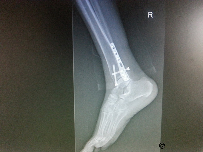 主诉:右三踝骨折ORIF术后一年半,要求取出内固定 病史:患者一年半前因外伤致右三踝骨折,1年前我院行“右三踝骨折ORIF术”。术顺,目前患者术后恢复良好,无切口处疼痛红肿热痛、无畸形愈合,为取出内固定再次入院。