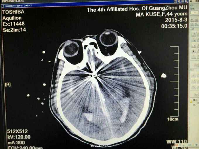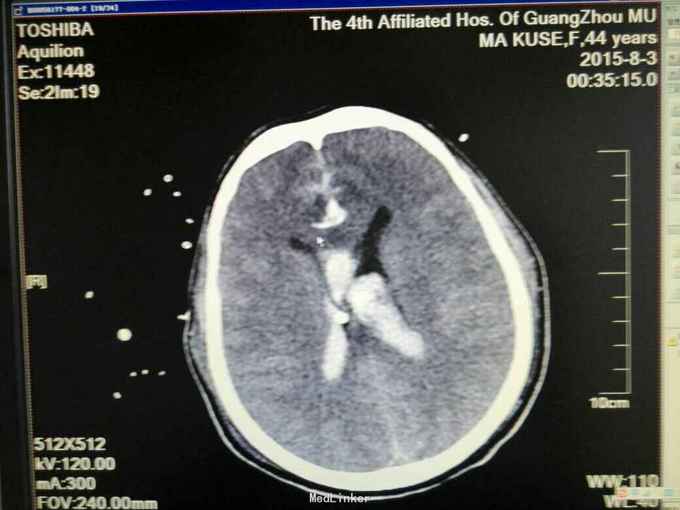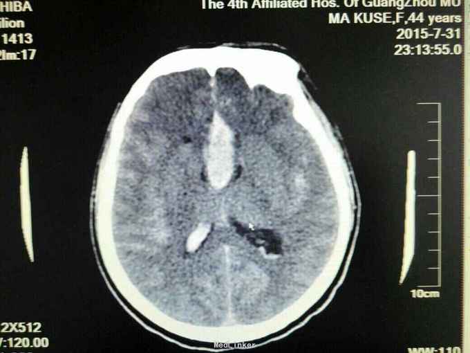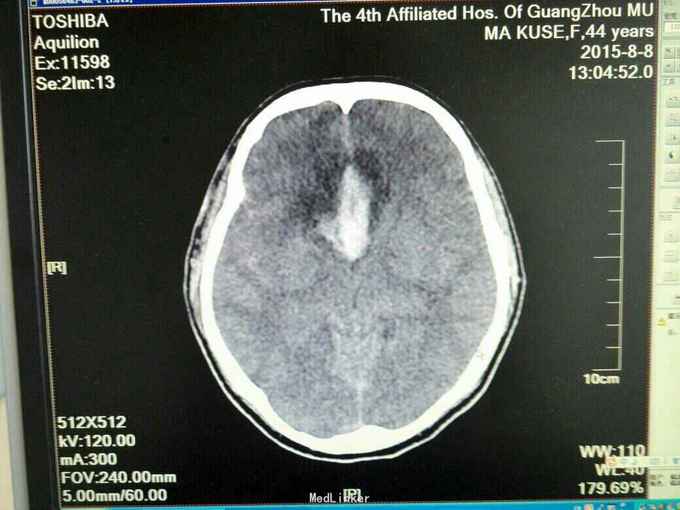 患者为马某某,女49岁,因“突发不省人事伴呕吐两小时收入我科”,既往体健,无高血压病史。
