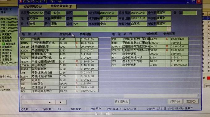 患者赵某,女,69岁,以“进食哽噎约4个月,发热3天”为主诉于2015年10月16日收入院。 现病史:2015.6月患者无明显诱因出现进食哽噎,就诊于我院,行胃镜示:贲门癌(溃疡型),全腹增强CT+胃三维重建示:胃底贲门部占位,肝脏多发转移瘤,胃周及腹膜后淋巴结转移。患者诊断后于沈阳市某医院行食道支架治疗,其后患者进食哽噎症状好转。2015.8月患者于该院行C1K生物治疗,及替吉奥口服化疗1周期,具体剂量(60mg bid D1-14)。患者3天前无明显诱因出现发热,体温最高39摄氏度,昨日患者自行口服美林及头孢克肟后体温降至37.35摄氏度,患者今日测体温38.6摄氏度,患者为求系统诊治入院,入院症见:周身乏力不适,发热,体温37.7摄氏度,恶心,呕吐胃内容物,便秘,无呕血及黑便,病来无明显咳嗽咳痰,无胸闷不适。 既往史:高血压病史10余年,血压最高220/130mmHg,目前应用“拜新同”控制血压,血压波动于140/80mmHg,否认糖尿病、冠心病,否认吸烟、饮酒不良嗜好,否认肝炎、结核等传染病史,否认手术、外伤、输血史,否认食物、药物过敏史。