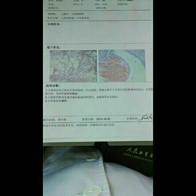 患者女性,26岁,有性生活,未婚未孕,因“B超发现左附件包块1年,伴左下腹隐痛1月”入院。 患者1年前人流术时B超发现左附件囊肿,自诉较小,无其他不适,未重视。入院前1月患者无诱因出现左下腹隐痛不适,于外院查B超提示左卵巢畸胎瘤(4.8*3.1cm),建议手术,患者因工作忙未立即手术。现为求手术治疗入住我院。