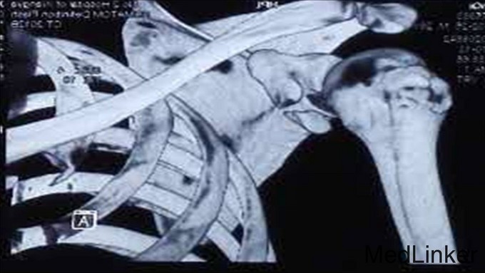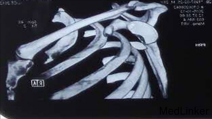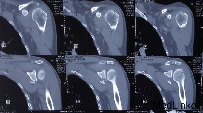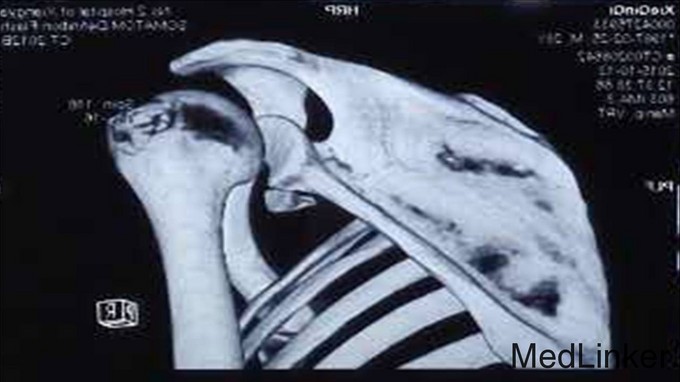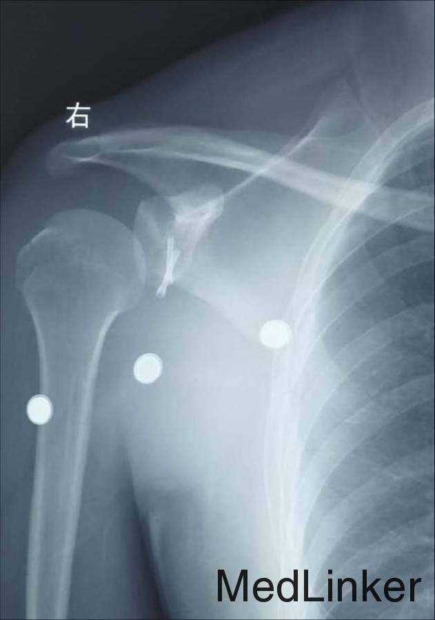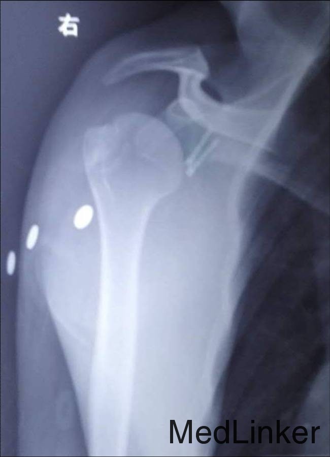 患者谢某某,男性,28岁,已婚 患者坠马后摔伤右肩部,局部肿痛伴活动受限7日 外院就诊摄片示:右肩胛骨折;右肱骨大结节骨折 右上肢外展支架外固定