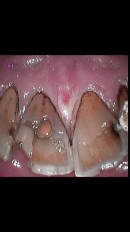 前门牙根管治疗3年后,牙齿变色,要求全瓷修复