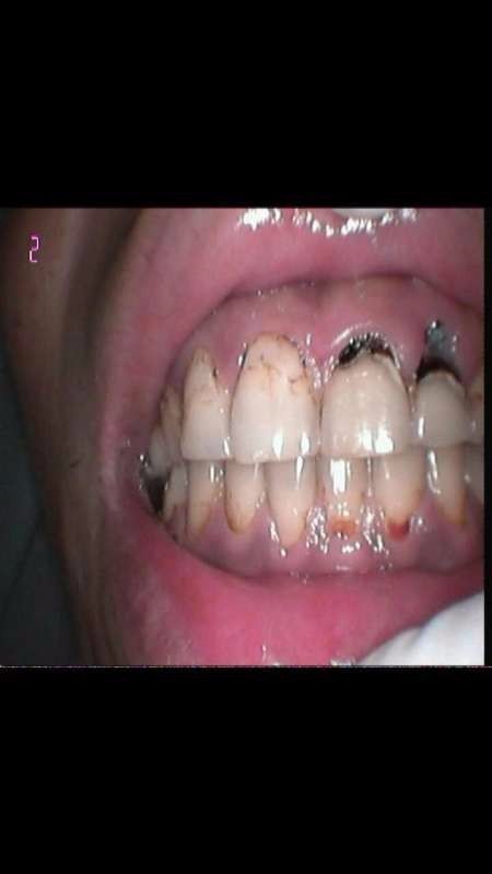 2122号牙颈部龋坏达髓腔,叩痛,无松动