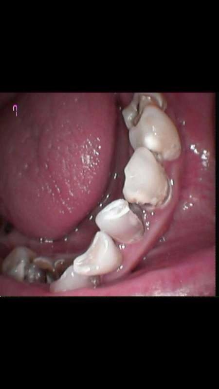 患者男25岁,右下23之间34之间45之间,邻面龋深答髓腔。冷热刺激痛。根管治疗后烤瓷牙修复