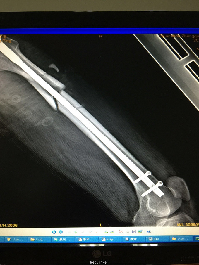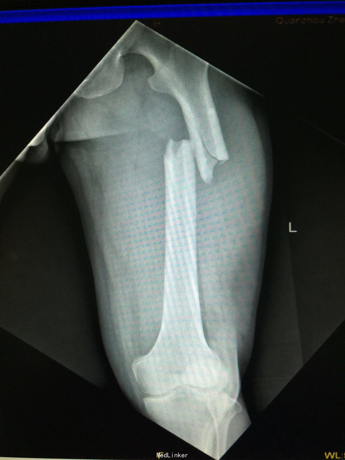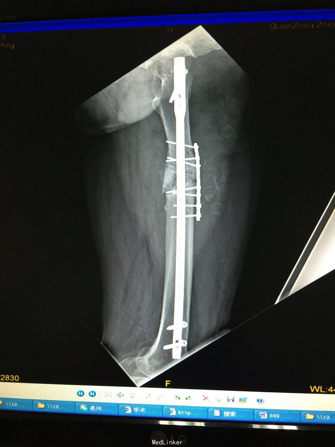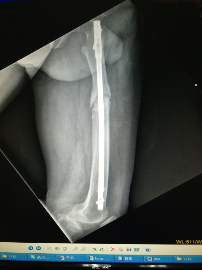 右股骨干骨折术后伴骨不连