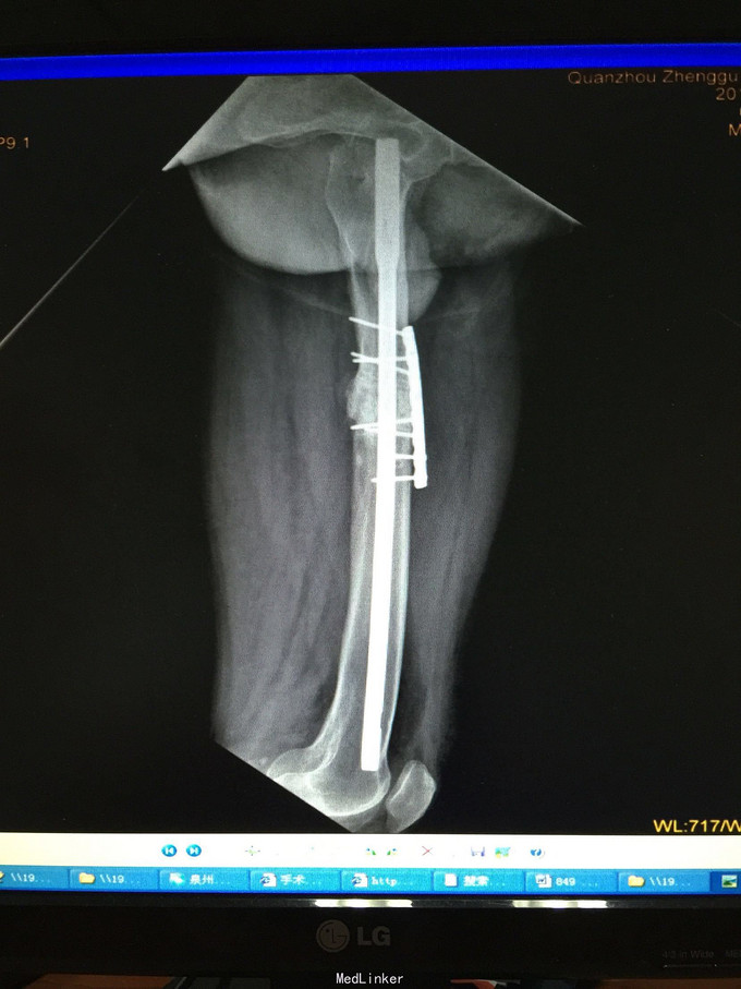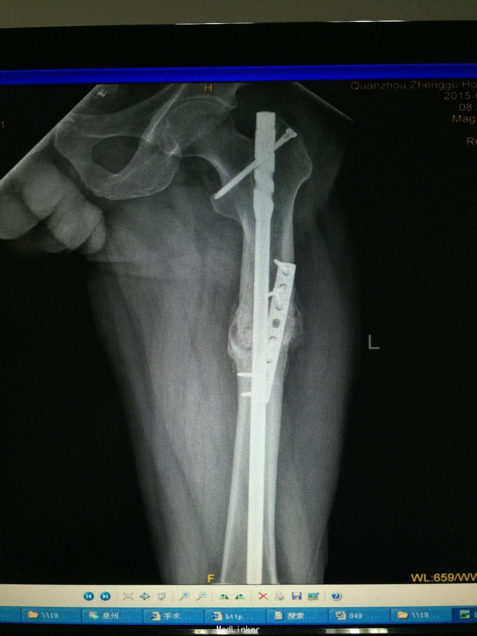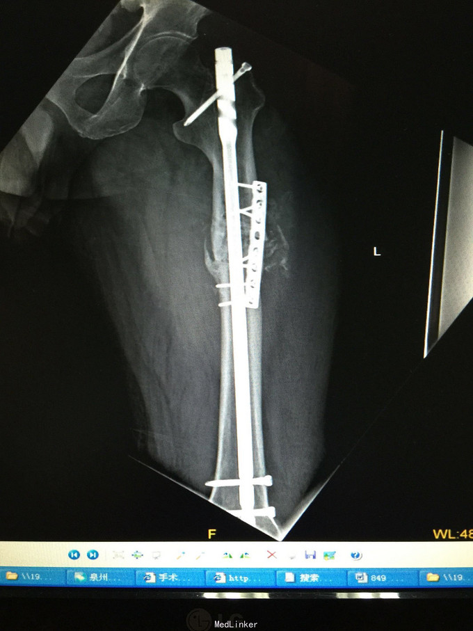 术后半年 讨论 考虑股骨中上段骨折 应力集中 近段一枚螺钉稳定性不够?