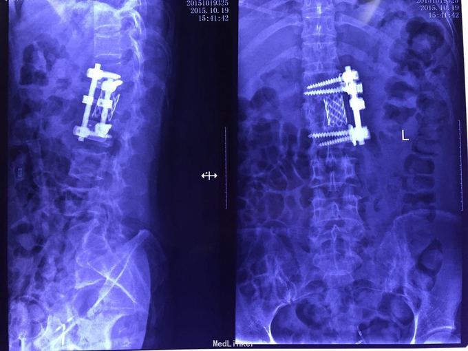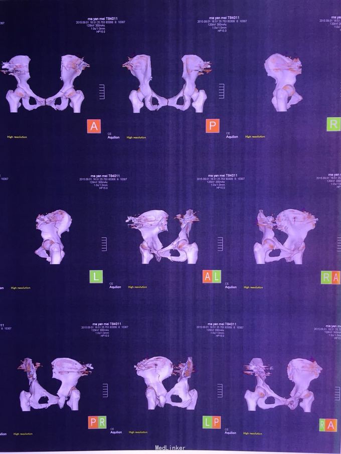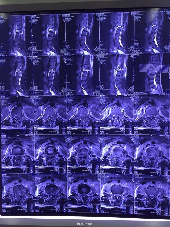 外伤后腰部疼痛伴双下肢感觉运动障碍2月余。 患者马某,女,41岁,2015年8月26日从三楼摔下,当时即出现腰部及下肢的感觉运动障碍,拍片诊断为"1,腰1骨折脱位并神经损伤。2,骨盆骨折,3,双侧肺搓伤并胸腔积液。"并及时对症行手术治疗。