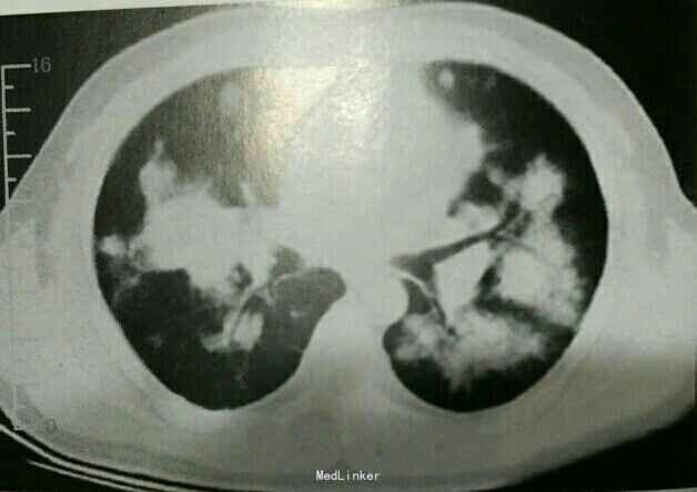 男性,52岁,间断低热,鼻出血,咳嗽咳痰,同时伴有痰中带血1年,疑为肺结核,给予抗结核4联治疗10个月,胸片CT提示双肺多发大小不等的结节影,及毛玻璃状阴影。因上述症状不见缓解,来我院收入病房。 既往史 无慢性病家族史。