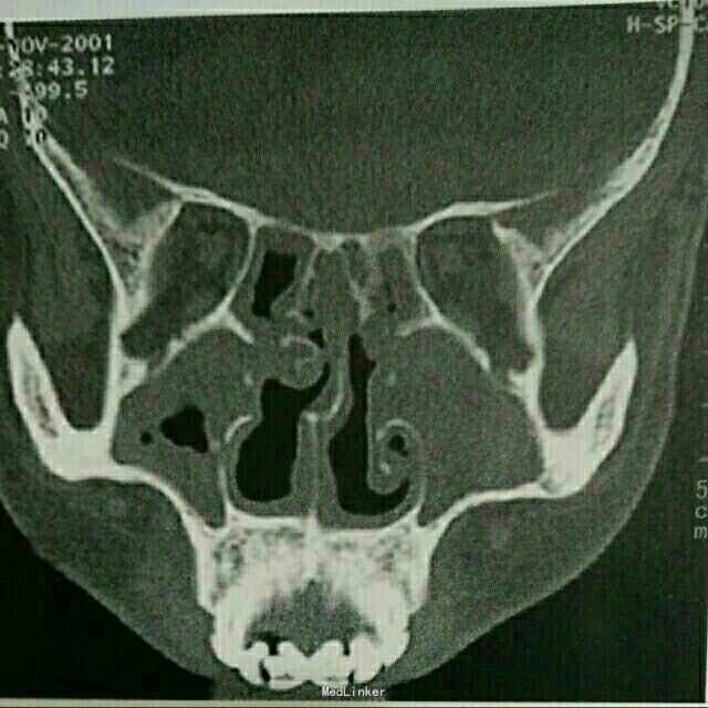 一般生命体征正常,双肺可闻及湿罗音。余未见阳性体征。血常规 正常。尿常规看见镜下血尿。鼻窦CT提示鼻中隔偏曲,双侧筛窦及上颌窦被软组织影充填。取肺组织病理提示间质内小动脉壁纤维素性坏死,中性粒细胞浸润。C-ANCA阳性。