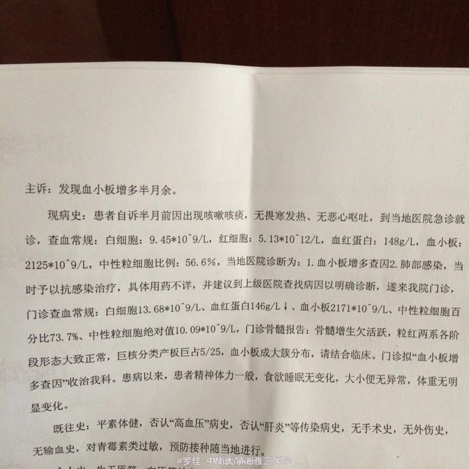 原发性血小板增多症?