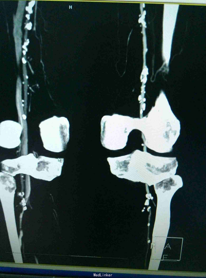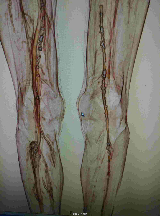 男患,74岁,间歇性跛行2年伴右足疼痛9+月,2年前无明显诱因出现间歇性跛行,行走后伴下肢远端疼痛、乏力,休息后缓解,无红肿发热及感觉异常,后行走距离渐变短,9月前加重伴远端静息痛。