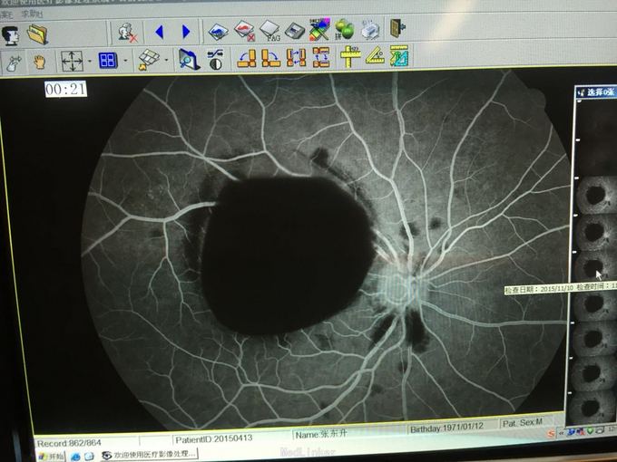中年男性,右眼突发视物不见5天,无其他病史。