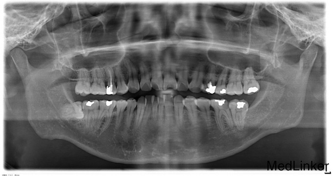 患者诉右下智牙反复肿痛史,曾咨询检查过,怕痛为处理,左下后牙长期冷热疼痛史