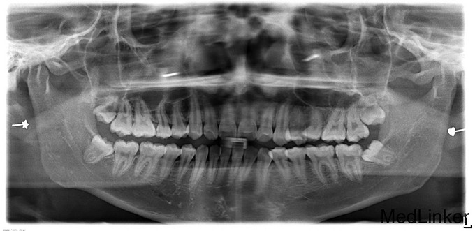 36远中颌面深龋洞,探质软,冷测剧痛,叩痛(-)无松动,牙龈无红肿 38可见部分牙冠,远中可见龈袋,牙龈充血,叩痛(-)