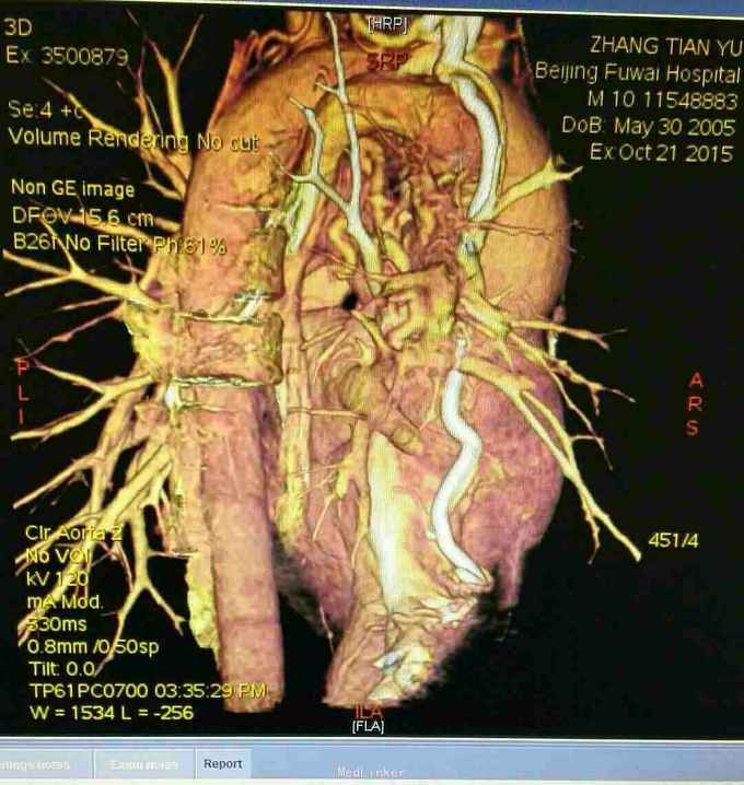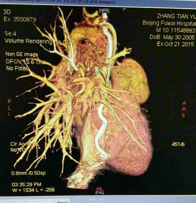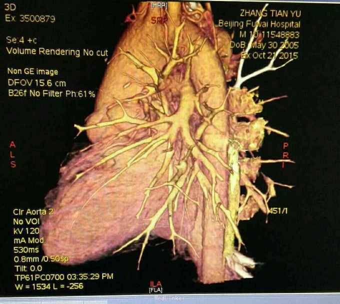 主诉 发现紫绀10年,双向Glenn术后9年。 病史 患者 男10岁,患者出生后即发现口唇紫绀,于当地医院行心脏彩超示 先天性心脏病 单心室 大动脉转位 肺动脉瓣重度狭窄,患儿1岁时因缺氧明显,故行双向Glenn术改善缺氧症状,术后患者紫绀明显改善,今年来患者活动后紫绀较前加重,有蹲踞活动量明显减少,故患者为行进一步治疗再次入院。