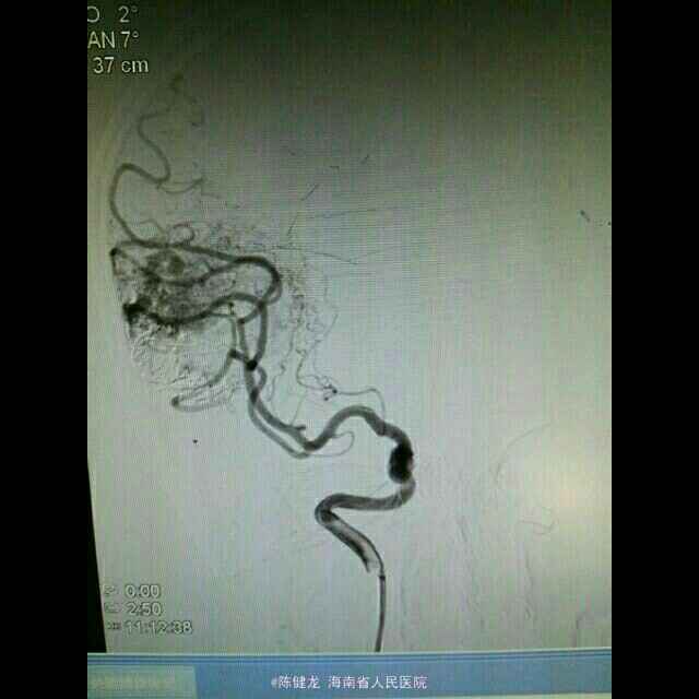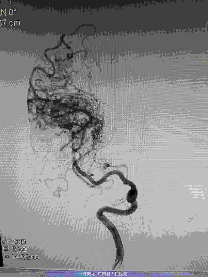 己进行二次治疗,拟近期内进行第三次治疗。争取80%至90%栓塞,残留部分伽玛刀治疗。