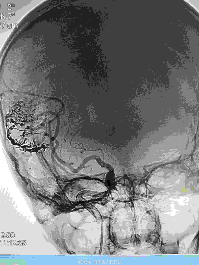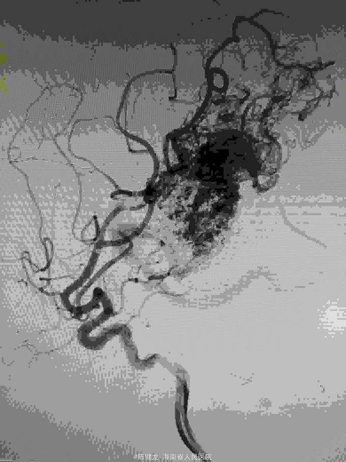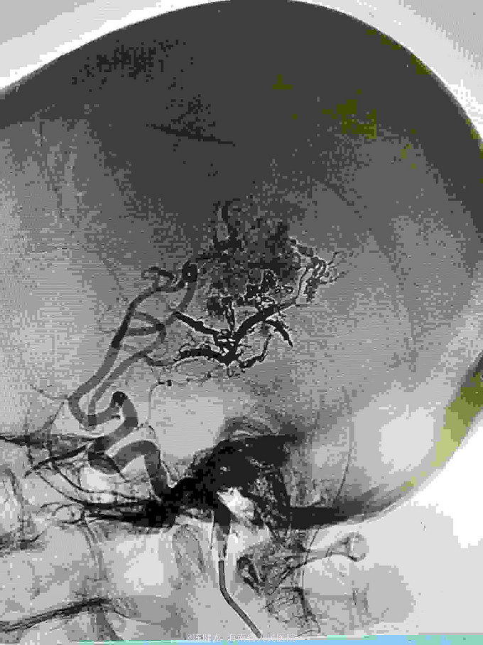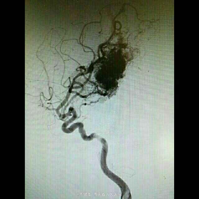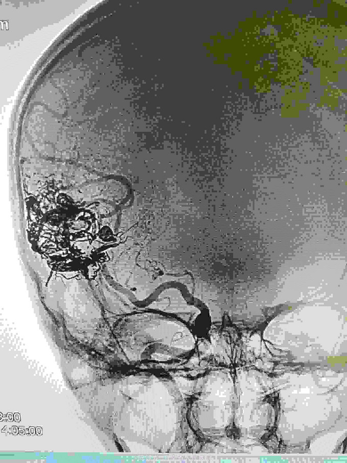 右颞大型AVM,大脑中主要供血。