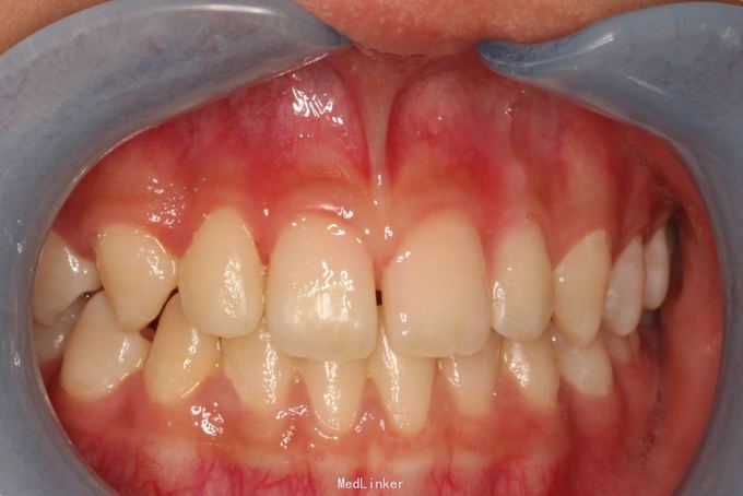 患者,王某,女,16岁 主诉:上前牙牙缝多年 病史:患者换牙期后上前牙一直有牙缝,逐渐变小,目前仍闭合不全,要求唇系带切除
