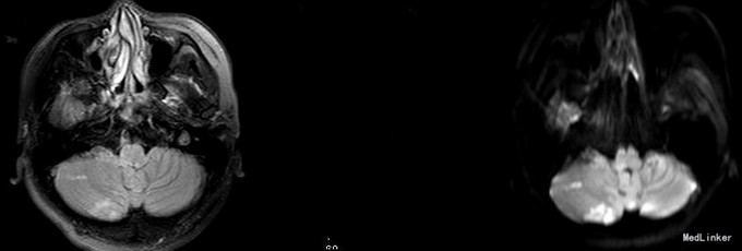 诊断:急性小脑梗塞 患者处于特殊的妊娠状态,遂给予对症补液、扩容治疗,患者治疗10天,临床症状缓解,转入产科待产。