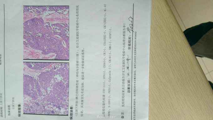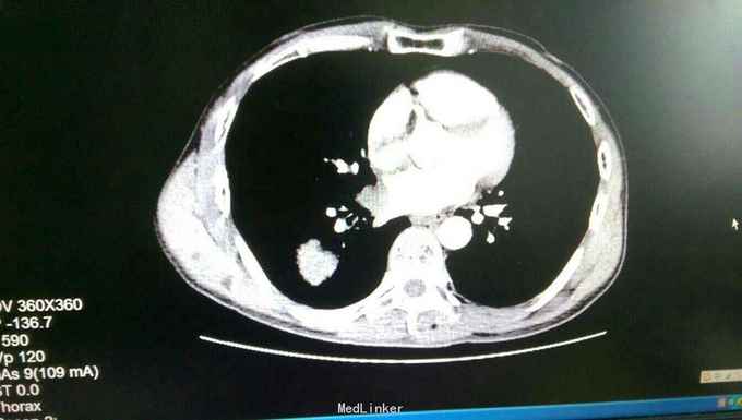 患者出院后,门诊服中药治疗,定期复查。 讨论:患者因左颌下肿块前来就诊,术前检查发现肺部肿块,一元论考虑,应为肺部肿瘤转移所致。而且手术后病理亦证实。关键当下颌部出现肿块,应考虑肿块性质的鉴别。1.应考虑颌下肿块与颈部淋巴结的鉴别,尤其是无痛性肿块,要和淋巴结核及肿瘤等鉴别。2要和周围组织的肿瘤如甲状腺,鼻咽癌等浸润转移鉴别。3.要考虑纵膈,肺等远处转移。该患者为右下肺肿瘤已向纵膈及颈部,颌下转移,但患者临床表现仅有左颌下肿块,无胸闷气急,无咳嗽咳痰,虽ct检查发现纵膈及颈部多发淋巴结肿大,患者却无上腔静脉回流受阻,颈部浅表淋巴结未能扪及。该病例提示我们,当患者颈部出现肿块,应仔细检查,多些鉴别,以免漏诊。
